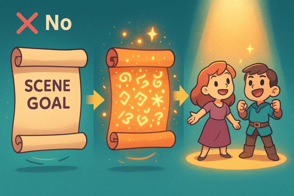 - Scene goal: one line. Name the change you need.