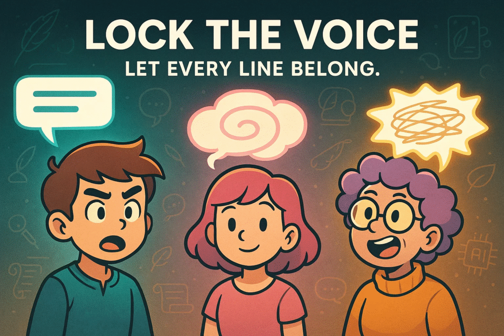 Keep a tiny voice card for each major role. Three traits. Three patterns. One banned habit. Use the card in your prompt. You will create natural rhythm fast and keep it over time.