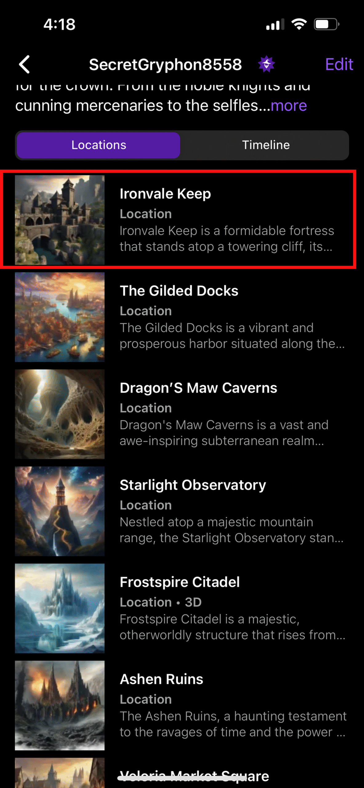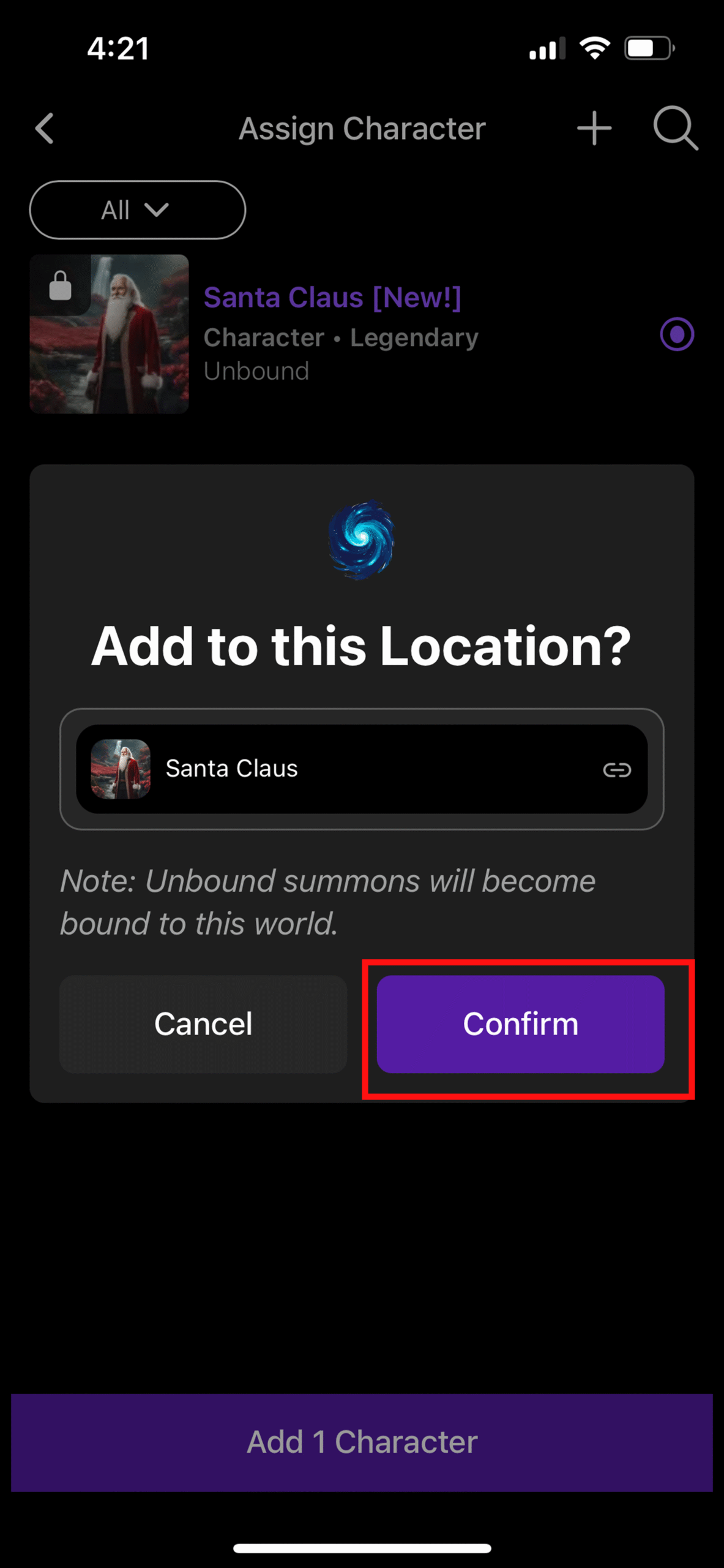 - You’ll see a list of your created locations. If you don’t have a location yet, refer to the Adding a Location Guide. If you do, tap the location you want to assign your character to.