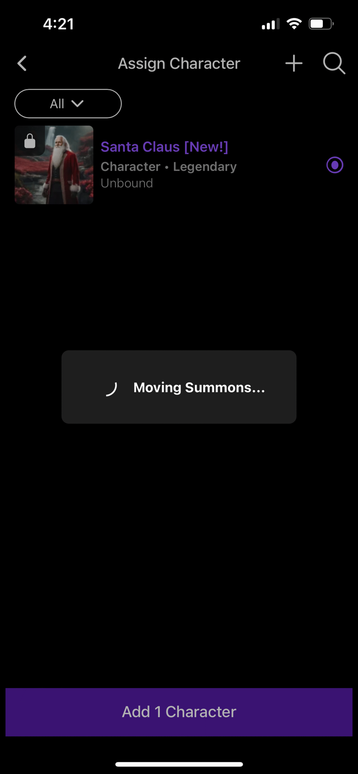- A list of unbound characters will appear. If you don’t have a character yet, refer to the Creating Summons Guide.