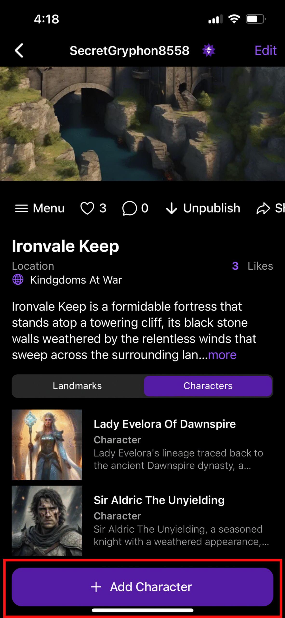 Characters make your Fantasy Worlds come alive. Their personalities, interactions, and stories shape the Roleplay with AI experience.
